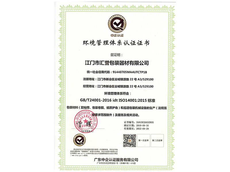 環境管理體系認證證書