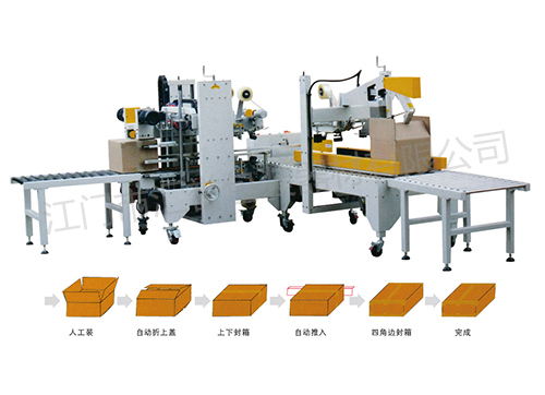 ☆自動折蓋封箱機與自動四角邊封箱機聯(lián)機配套組合成自動“H”型封箱