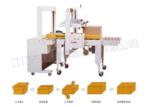 自動封箱打包機是一種集自動封箱及捆扎為一體的包裝機,可配套自動化包裝流水線使用,自動上下封膠帶、多道捆扎,實現后道無人化包裝。工作效率高,廣泛適應于玩具、家電、印刷、醫藥、電子、日用品等大批量生產的行業。